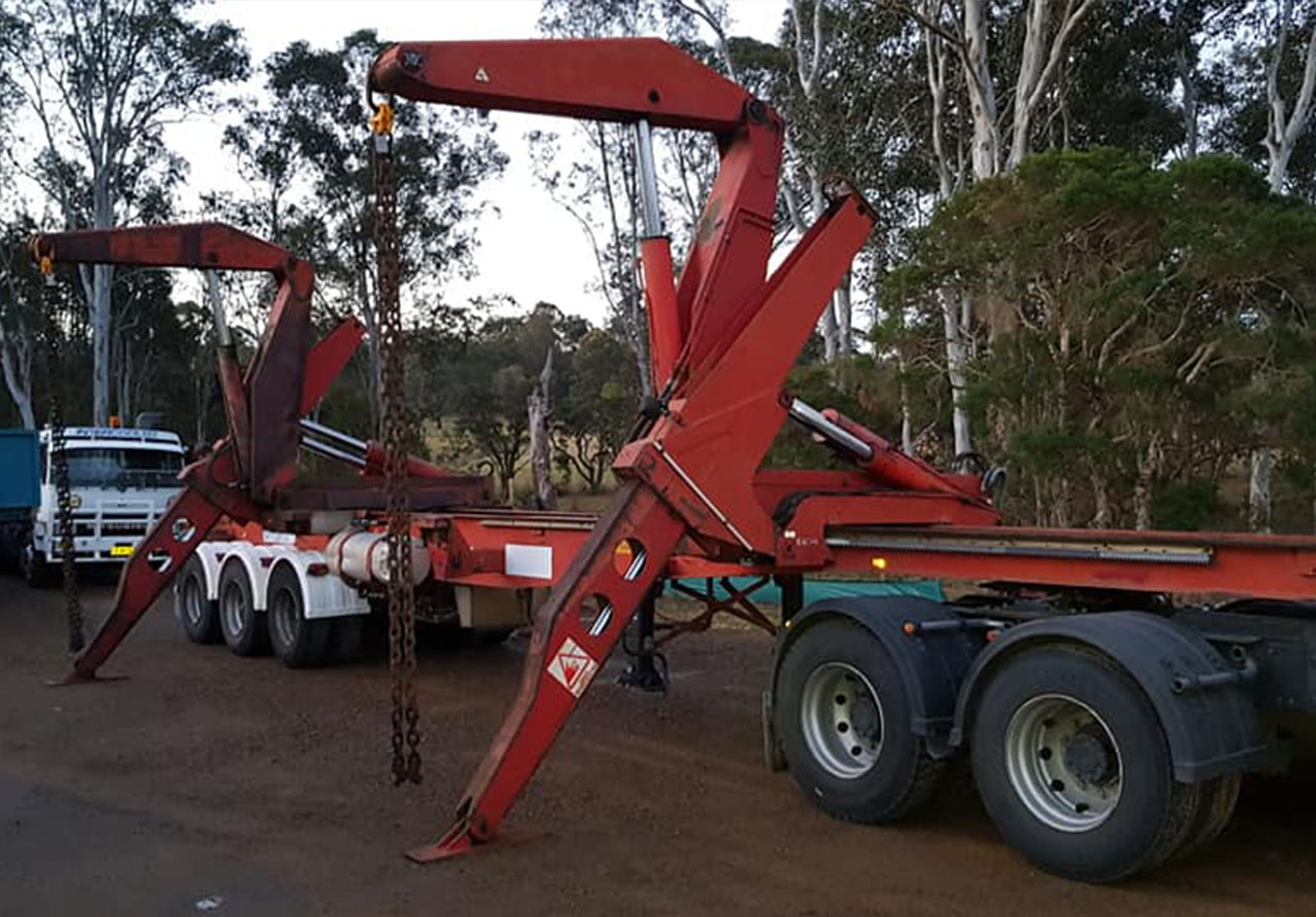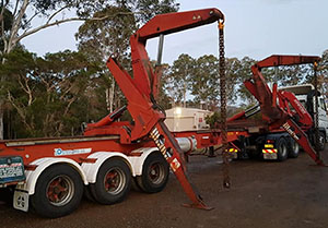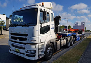 22 tonne Mitsubishi with Hiab Crane, Ramps, Semi with 20ft & 40ft Container Pins