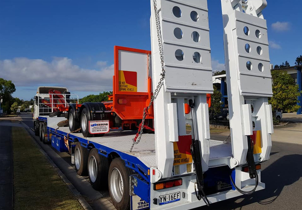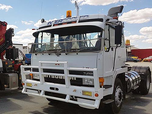 22 tonne Mitsubishi with Hiab Crane, Ramps, Semi with 20ft & 40ft Container Pins